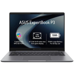 ASUS představuje kompaktní a elegantní šestnáctipalcový ASUS ExpertBook P3 PM3406 s hmotností pouhých 1,42 kg s novým designem s mlhavě šedým provedením, který představuje dokonalou kombinaci výkonu, zabezpečení a přenosnosti. Pomůže vám zvládnout náročné úkoly s využitím umělé inteligence. Díky certifikaci Copilot+ PC získáte přístup k nejnovějším AI funkcím Windows 11, jako jsou pokročilé asistenční nástroje, rychlé vyhledávání nebo automatizace pracovních postupů. Kvalitní zabezpečení, účinné chlazení a odolnost na vojenské úrovni jsou další přednosti notebooku ASUS ExpertBook P3.