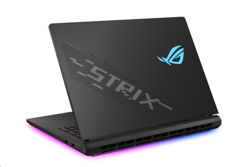 ASUS ROG Strix SCAR 18 G835 upoutá elegantním a moderním vzhledem s hladkou prémiovou texturou šasi se skosenými rohy a zaoblenými hranami. Notebook je vybaven výrazně zářícím světelným RGB panelem podél celého obvodu spodní části šasi. Displej AniMe Vision na víku notebooku s 810 LED diodami umožňuje předvést váš styl pomocí celé řady předpřipravených nebo vlastních animací.