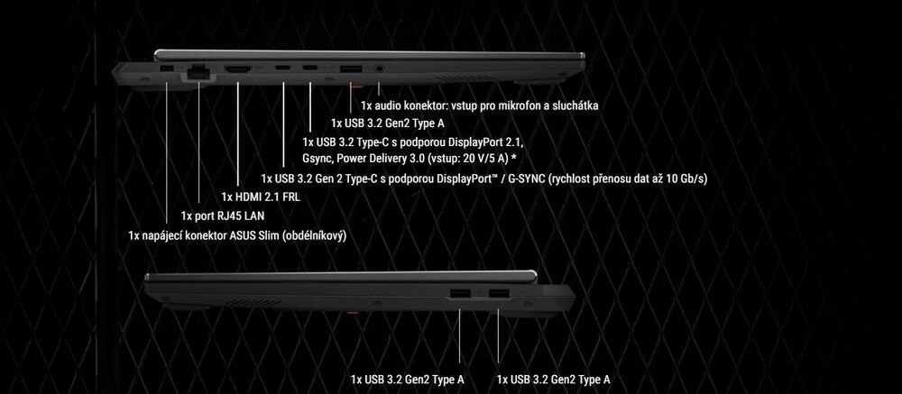 Nejmodernější zařízení k notebooku snadno připojíte s všestranným portem USB-C, který disponuje podporou rozhraní DisplayPort, umožňujícího připojení 4K displeje nebo televizoru či monitoru s rozlišením až 8K UHD pro pohlcující obraz. Pro periferie je pak připravena dvojice portů USB 3.2 a jeden USB 2.0. Pomocí bezdrátového rozhraní Bluetooth 5.3 můžete spárovat myši, sluchátka a další kompatibilní zařízení a získat tak pracovní prostor bez rušivých elementů. A co by to bylo za herní notebook bez parádně rychlého připojení k internetu? Využijte služeb klasického rozhraní RJ-45 nebo Wi-Fi 6E a získejte rychlé a spolehlivé připojení bez lagů a s nízkými latencemi všude tam, kde je k dispozici bezdrátová síť.