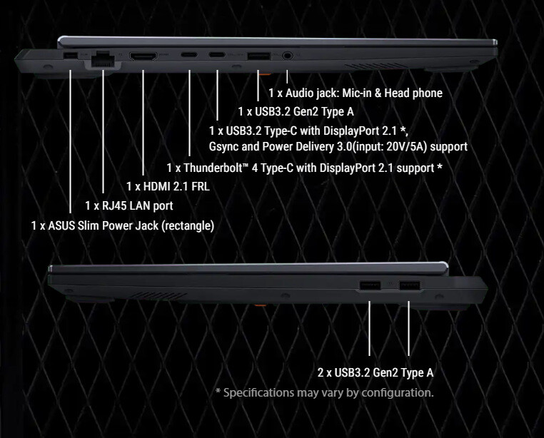 1x Thunderbolt 4 with support for DisplayPort / G-SYNC (data speed up to 40Gbps)