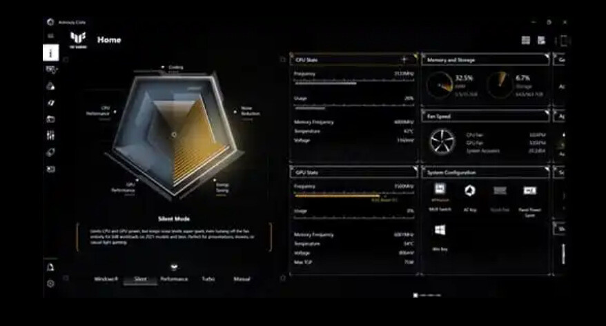 Software Armoury Crate sjednocuje správu výkonu, osvětlení a zvuku. K dispozici jsou také přizpůsobitelné herní profily, jež se automaticky aktivují při spuštění oblíbených titulů.