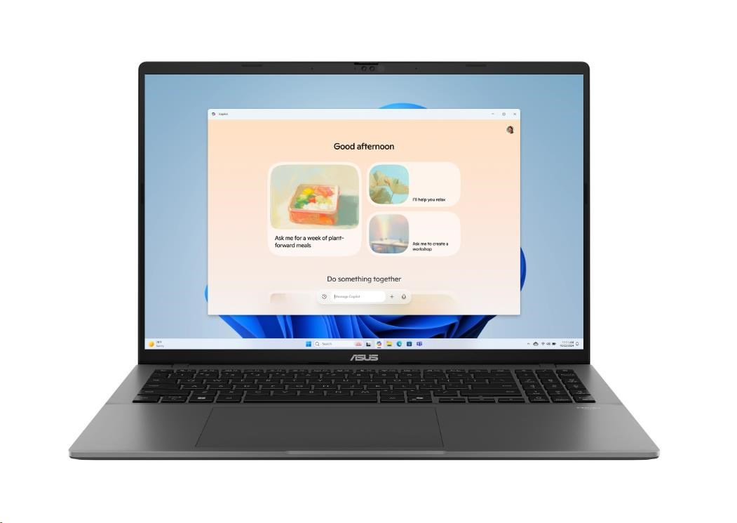 Klávesnice je vybavena klávesou Copilot pro okamžitý přístup k Microsoft AI společníkovi. Získáte přístup k nejnovějším AI funkcím Windows 11, jako jsou pokročilé asistenční nástroje, rychlé vyhledávání nebo automatizace pracovních postupů. Notebook je vybaven zvukovým systémem Dolby Atmos a technologií ASUS Audio Booster pro vysoce kvalitní a detailní reprodukci.