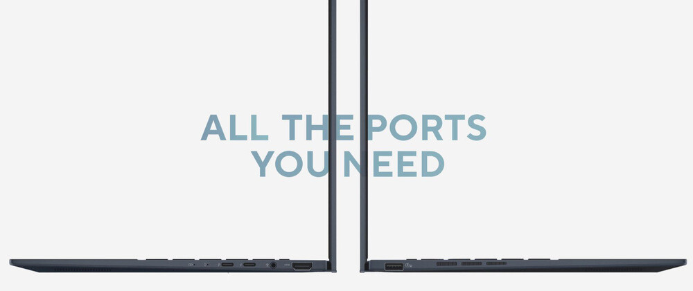 Asus ZenBook 14 OLED je vybaven hned dvěma porty s moderním oboustranným konektorem typu USB-C s designem, který umožňuje připojení libovolného zařízení. Oproti staršímu typu připojení USB 2.0 rovněž poskytuje až 10× vyšší rychlost přenosu dat, a navíc jej lze použít k připojení dalšího displeje přes rozhraní Thunderbolt 4. Dále se na těle zařízení nachází port USB 3.2 typu A, a výstup HDMI 2.1, takže můžete bez sebemenších potíží snadno připojit všechny své stávající periferie, displeje a projektory. Možnosti bezdrátového připojení pak zastupují Bluetooth 5.4 a Wi-Fi 7.