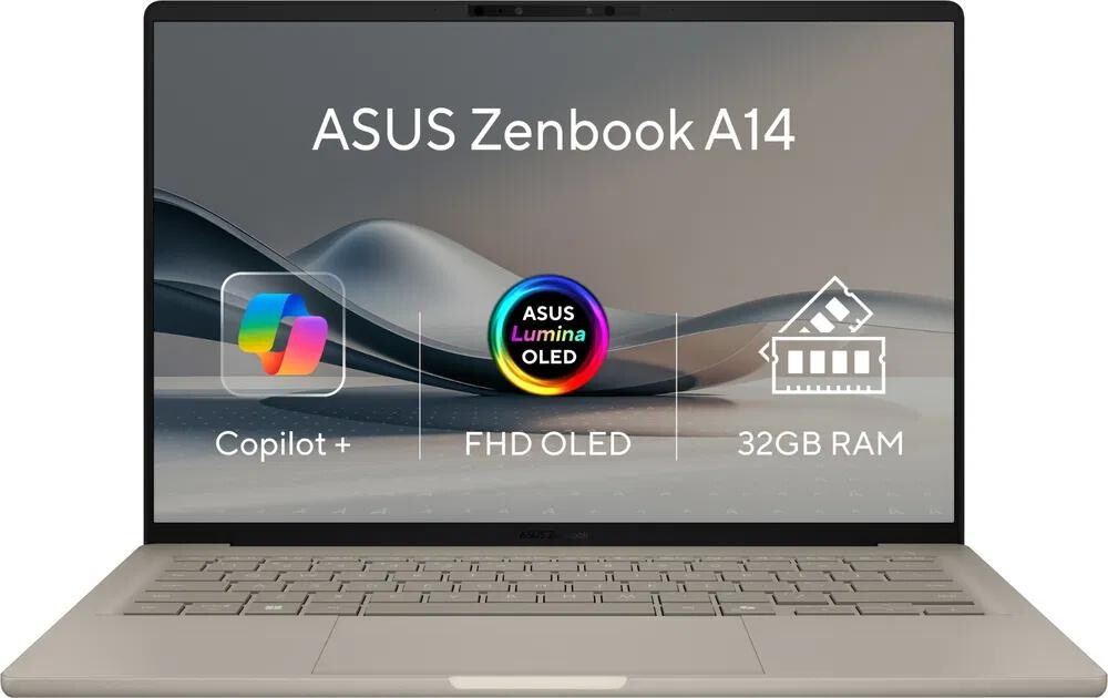 ASUS Zenbook A14 v elegantním minimalistickém designu je Copilot+ PC notebook s procesorem Qualcomm Snapdragon X a integrovanou umělou inteligencí. S hmotností menší než jeden kilogram a několikadenní výdrží baterie vám výborně poslouží na cestách.