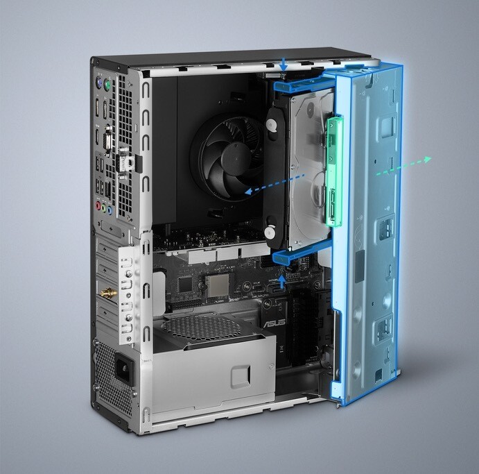 SFF se chlubí skvěle vybalancovaným výkonem a kompaktními rozměry. Navíc lze na pracovní desku umístit horizontálně i vertikálně, takže na něj můžete klidně položit displej. Maximalizuje tak prostor na pracovním stole, zároveň ovšem nabízí dostatek místa pro základní hardware i různá rozšíření. Každý uživatel si tedy přijde na své. Kompaktní šasi už na první pohled vypadá elegantně, a navíc je přepracované tak, abyste z něj mohli snadno vyjímat a modernizovat komponenty nebo provádět rutinní servis bez použití nářadí.