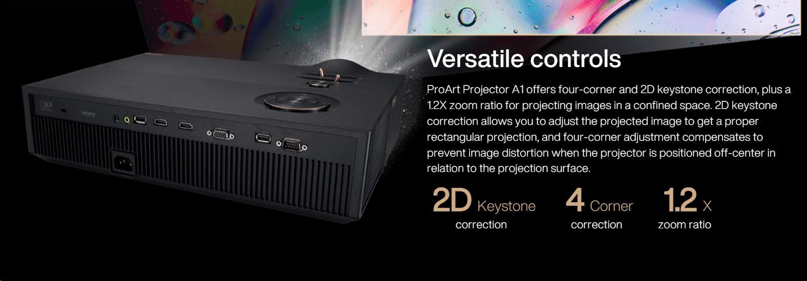 ASUS ProArt A1 LED professional projector- World’s first Calman Verified projector,? E < 2, 98% sRGB and Rec. 709, FHD (1920 x 1080), 3000 lumens, Four corner and 2D keystone correction, 1.2X zoom ratio, wireless mirroring
