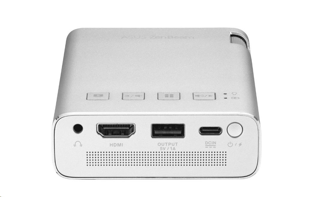 ASUS ZenBeam E1R mini LED projector – 200 LED lumens, WVGA (854x480) resolution, automatic portrait projection mode, built-in battery for up to 4-hour portable video playback , power bank, USB Type-A, HDMI