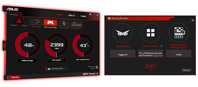 Společnost Asus přináší aplikace GPU Tweak II a XSplit Gamecaster. GPU Tweak II vám nabídne intuitivní rozhraní, které vám pomůže s modifikacemi frekvence, napětí, výkonu větráčků a mnoho dalšího. Ty si pak můžete uložit na svůj profil a podle potřeby na něj přepnout. XSplit Gamecaster je aplikace pro tvůrce herních videí. Kromě možnosti personalizace vysílaného okna (přidání vašeho loga, obrázku či facecamu), vám umožní ukázat vašemu publiku, co se chystáte udělat, označit důležitá místa na obrazovce, nebo jim prostě jen tak začít kreslit. Součástí je také beta verze jednoduchého editoru videa.