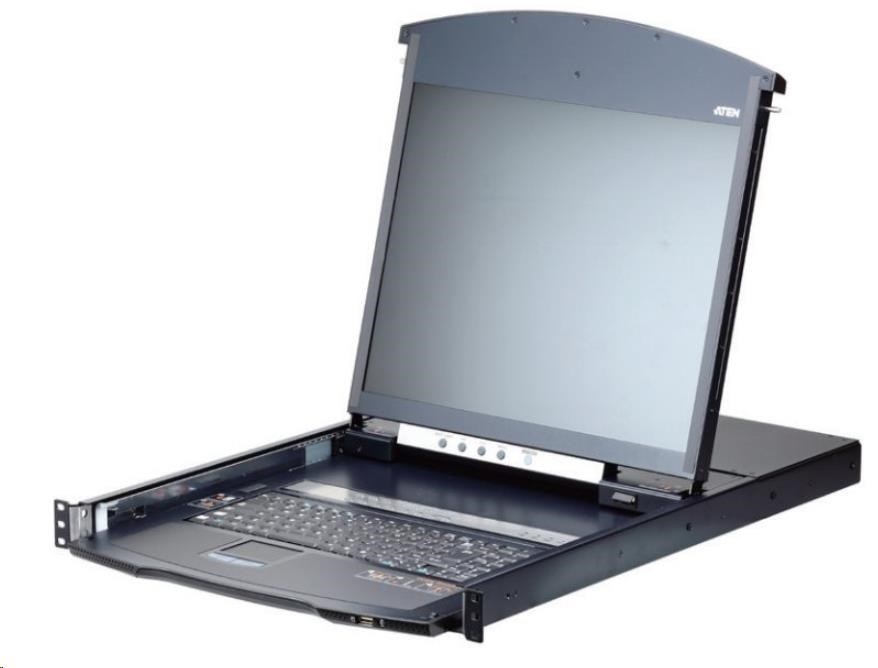ATEN 8-port Cat.5 KVM PS/2+USB, OSD, dual rail rack, 19" LED LCD, ovládání over IP 1local/1remote
