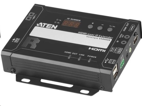 Přístroj ATEN VE8950 Video over IP Extender poskytuje vizuálně bezztrátový 4K AV signál s nízkou latencí na dlouhé vzdálenosti prostřednictvím standardní počítačové sítě a kabelů RJ45.