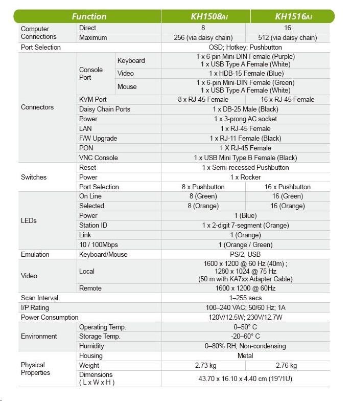 Máte k produktu dotaz? Zeptejte se nás.Hodnocení produktu ATEN přepínač KH-1516AI 16-port OverNet Cat5 KVM PS/2+USB, OSD, rack, SUN, PON, VNC