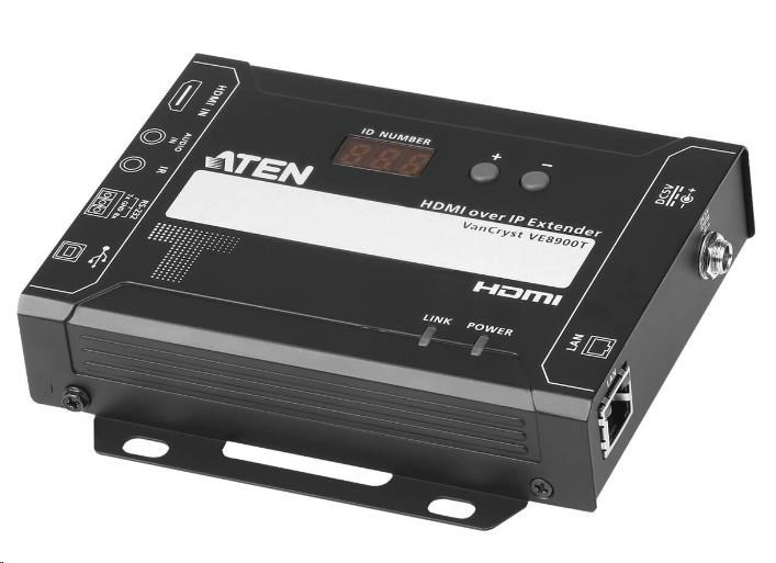 ATEN True 4K HDMI H.265 over IP Transceiver s PoE (možno nastavit jako vysílač / přijímač)Input:HDMI; Output:HDMI.