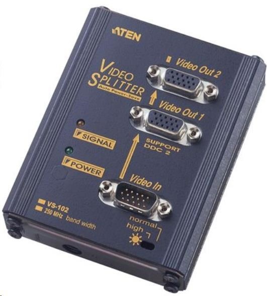 ATEN Video rozbočovač 1 PC - 2 VGA 250MhzDruh IO zařízení:Video rozbočovač; Provedení:Externí.