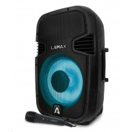LAMAX PartyGo1 - přenosný reproduktorPřenosný Bluetooth party reproduktor s madlem, BT 5.3, výkon 100 W, 3 režimy LED podsvícení, 20 hodin výdrž, ovládání přes zařízení s iOS nebo Android, drátový mikrofon v balení, LAMAX BeatBass®, voděodolnost IP67, 6,3 mm jack, SD karta, USB-A vstup, funkce powerbanky, TWS funkce pro připojení druhého reproduktoru..