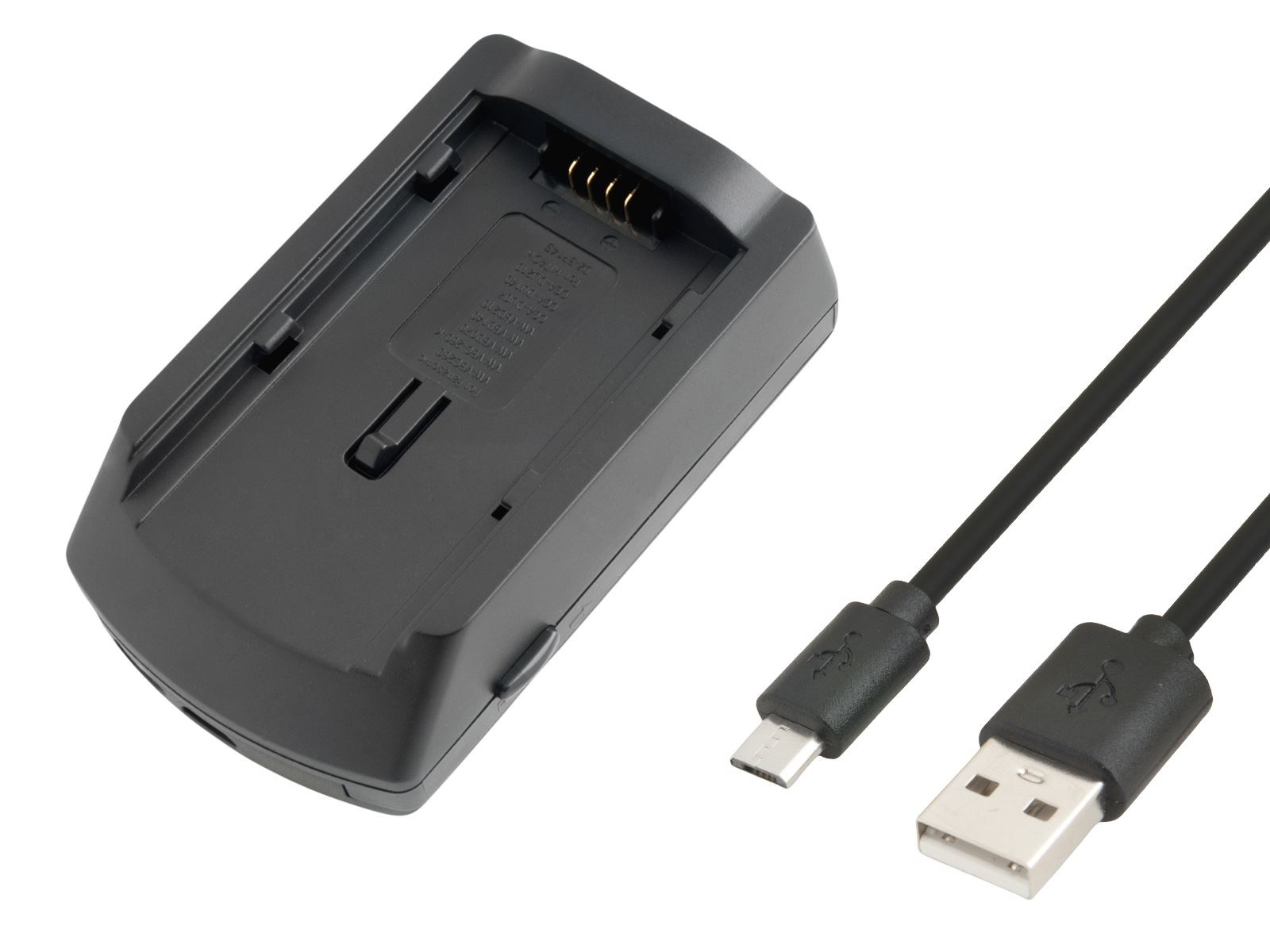 Nabíječka s Micro-USB vstupem pro baterie do fotoaparátů a videokamer. Pro akumulátor: PANASONIC: CGA-E/625, VW-VBG070, VW-VBG6, VW-VBG6-K, VW-VBG6PPK, VW-VBG130, VW-VBG260 Obsah balení: návod, nabíjecí základna, nabíjecí redukce, kabel..