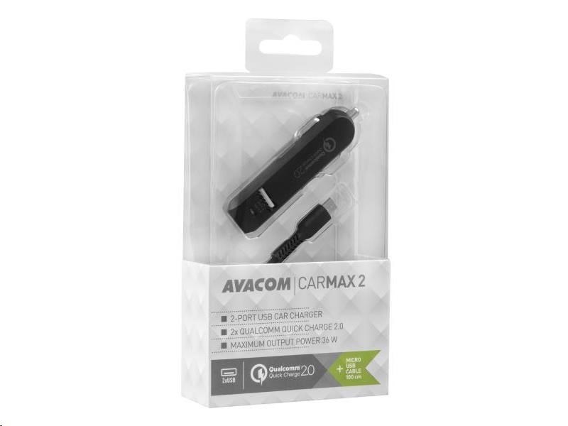 Qualcomm Quick Charge je v současné době nejrozšířenější technologie rychlonanabíjení na trhu. Lze ji využít pro kompatibilní zařízení a při použití datového kabelu (kabelu se zapojenými datovými piny). Kabel přiložený v balení je s technologií kompatibilní. Nabíječka je vhodná pro zařízení, která podporují QC 2.0, QC 3.0, Samsung Adaptive Fast Charging, Asus BoostMaster apod. Při využití rychlonabíjení Qualcomm Quick Charge na obou portech nabíječka umožňuje nabíjení s celkovým výstupním výkonem až 36W. I bez využití QC technologie, tj. při nabíjení běžných zařízení, nabízí AVACOM CarMAX 2 skvělou rychlost a nabíjení s proudem až 2 A pro každý USB port.