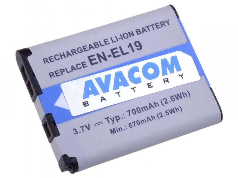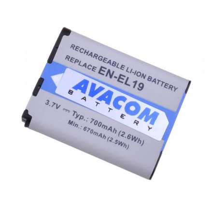 AVACOM Nikon EN-EL19 Li-ion 3.7V 620mAh 2.3WhBližší parametry: 39.6x31.15x6.1mm, 14g, barva černá Použití: NIKON.
