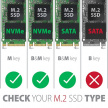Unikátní vlastností, díky novému čipsetu, je možnost použití jak M.2 NVMe tak i SATA disků. Nemusíte tak přemýšlet jaký typ M.2 disku do boxu vložíte. Výhodou je uchycení rovnou pro tři různé délky SSD karet - 42, 60 a 80 mm. M.2 karty mohou být jednostranné nebo oboustranné. Box nemá omezení kapacity vloženého SSD disku.