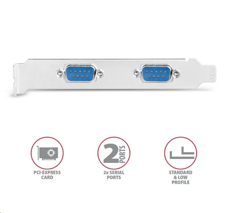 PCI-Express karta AXAGON PCEA-S2N rozšíří stolní počítač o dva sériové RS-232 porty s DB-9 konektory.