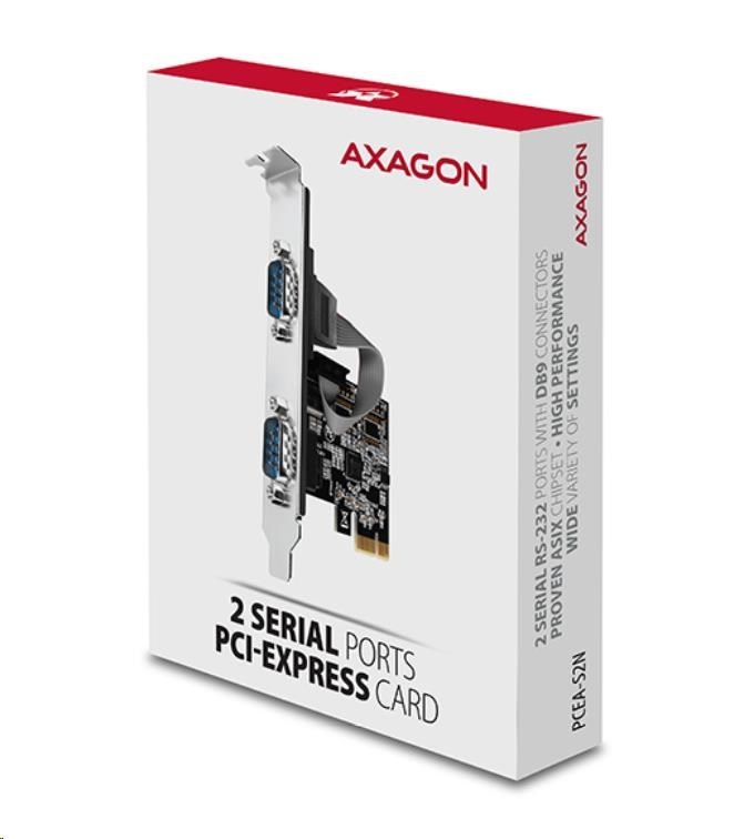 AXAGON PCEA-S2N, PCIe řadič - 2x sériový port (RS232) 250 kbps, vč. LP