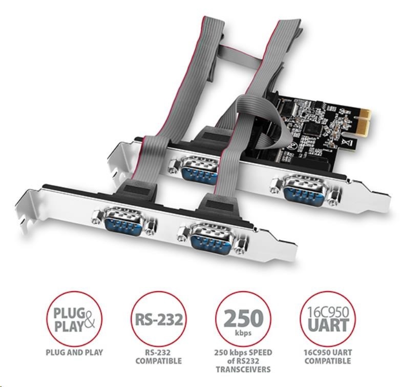 AXAGON PCEA-S4N, PCIe řadič - 4x sériový port (RS232) 250 kbps, vč. LP