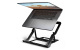 Stojan lze snadno složit do kompaktních rozměrů, což umožňuje pohodlné přenášení kamkoli potřebujete. Jeho elegantní design v černé barvě nejen stylově doplní váš pracovní stůl, ale také přináší praktické funkce, které oceníte při každodenním používání.