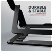 Podstavec je vyroben z hliníkových odlitků garantujících dlouhou životnost a spolehlivost. Díky protiskluzové úpravě se nemusíte obávat nežádoucích pohybů – vaše zařízení zůstane pevně na svém místě, a to bez poškození povrchu notebooku či podložky. Tyto pečlivě navržené vlastnosti zaručují perfektní stabilitu pro váš notebook, tablet nebo dokonce oblíbenou knihu, což vám poskytne klid a pohodlí při každodenním používání.