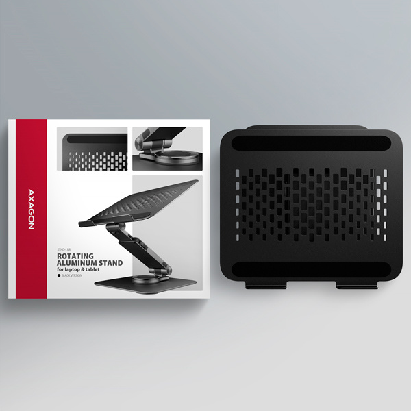 AXAGON STND-LRB, hliníkový stojan pro notebooky 10"-17.3" s nastavitelnou výškou, úhlem a 360° rotací, černý