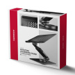 Stojan lze snadno složit do kompaktních rozměrů, což umožňuje pohodlné přenášení kamkoli potřebujete. Jeho elegantní design v černé barvě stylově doplní váš pracovní stůl. Větrací otvory v podložce zajišťují optimální odvod tepla z vašeho notebooku, čímž zvyšují jeho výkon a životnost.