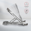 Skládací stojan AXAGON STND-M vám pomůže mít displej vašeho telefonu nebo tabletu stále na očích. Stojan má univerzální použití pro zařízení od 4" až do 10.5". Přizpůsobení sklonu stojánku dle vašeho přání umožní pět nastavitelných pozic, a to při horizontální i vertikální orientaci telefonu / tabletu.