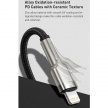 Kabel je vyroben z nylonového opletení odolného proti prasklinám a deformacím a zesílené spoje a hliníkové zátky zabraňují prasklinám a jinému poškození.