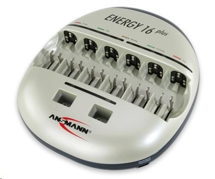 Mikroprocesorem řízená Hi-tech (100-230V) nabíječka Ansmann Energy 16 Plus pro NiCd a NiMH akumulátory s výstupem USB. Současně lze nabíjet jakékoliv kombinace uvedených akumulátorů. Nabíjecí čas je v závislosti na kapacitě a stavu akumulátorů.