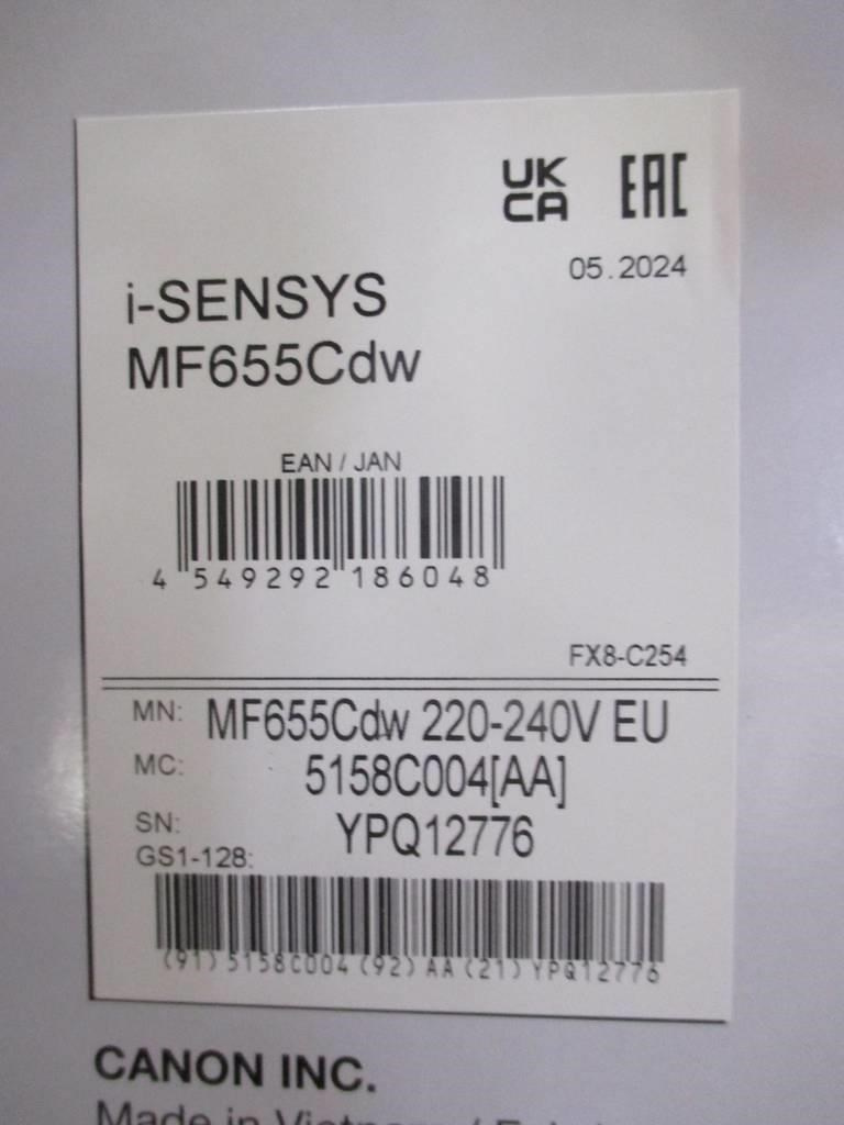 Kód: 1050638Prodejní číslo: 5158C004 //BAZARBAZAR - Canon i-SENSYS MF655Cdw - barevná, MF (tisk, kopírka, sken), duplex, ADF, USB, LAN, Wi-Fi - Poškozený obal