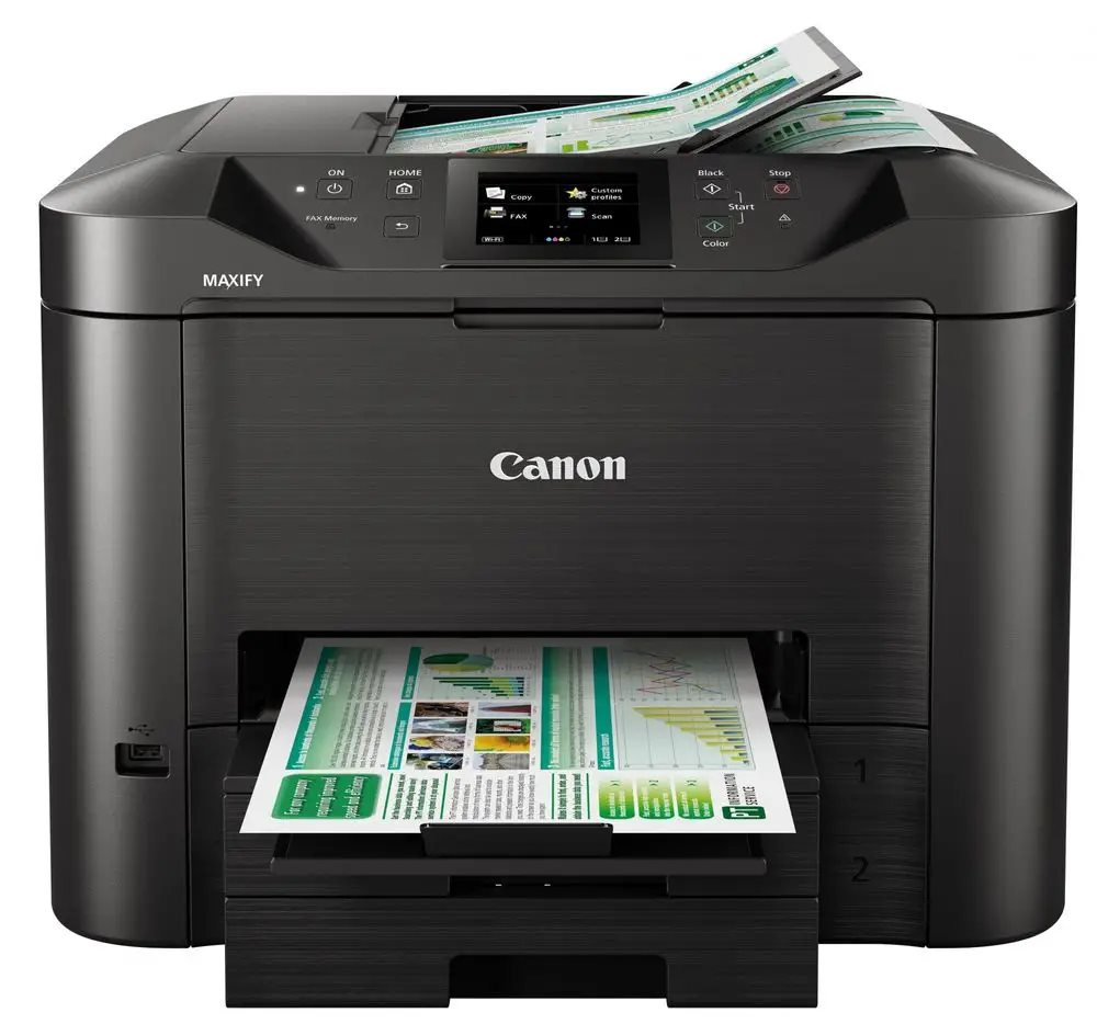 Velký 8,8cm barevný dotykový displej umožňuje snadný přístup ke všem funkcím zařízení řady MAXIFY MB5450. Zařízení řady MAXIFY MB5450 je vybaveno vysokokapacitním podavačem na 500 listů a automatickým podavačem dokumentů na 50 listů. Díky oboustrannému tisku a podpoře papírů různých formátů a typů – od běžného papíru A4 přes štítky, obálky a fotografický papír po oboustranné kopírování vizitek – budou běžné kancelářské tiskové úlohy hračkou.