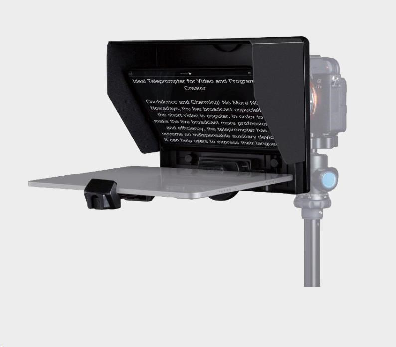 Feelworld TP10 je přenosné skládací čtecí zařízení, které je vybaveno 10palcovým sklem pro dělení paprsků, které vám umožňuje jasně číst rolující text při pohledu přímo do kamery. Zařízení je ideální pro vlogy, živá vysílání, online výukové hodiny, nahrávání videí, rozhovory, video studio, zprávy a prezentace. Není třeba se učit scénář nazpaměť! Text může být zobrazen na smartphonu nebo tabletu, zatímco pomocí digitální zrcadlovky nebo smartphonu natáčíte. Mezi hlavní vlastnosti patří podpora širokoúhlého objektivu, aplikace pro Android/iOS, Bluetooth dálkové ovládání a snadné nastavení a ovládání zařízení, což zefektivňuje produkci videí.