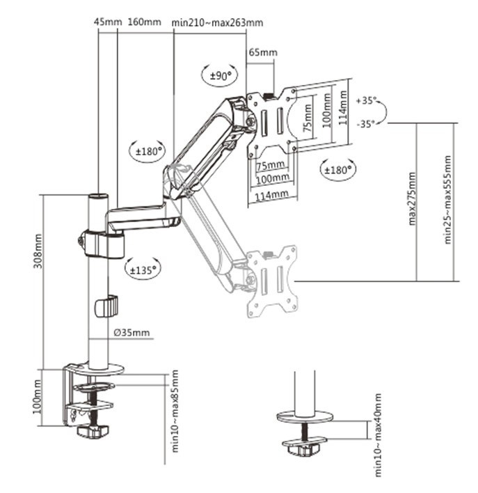 - Odolné nastavitelné plynové pružiny vhodné pro monitory 1 - 9 kg