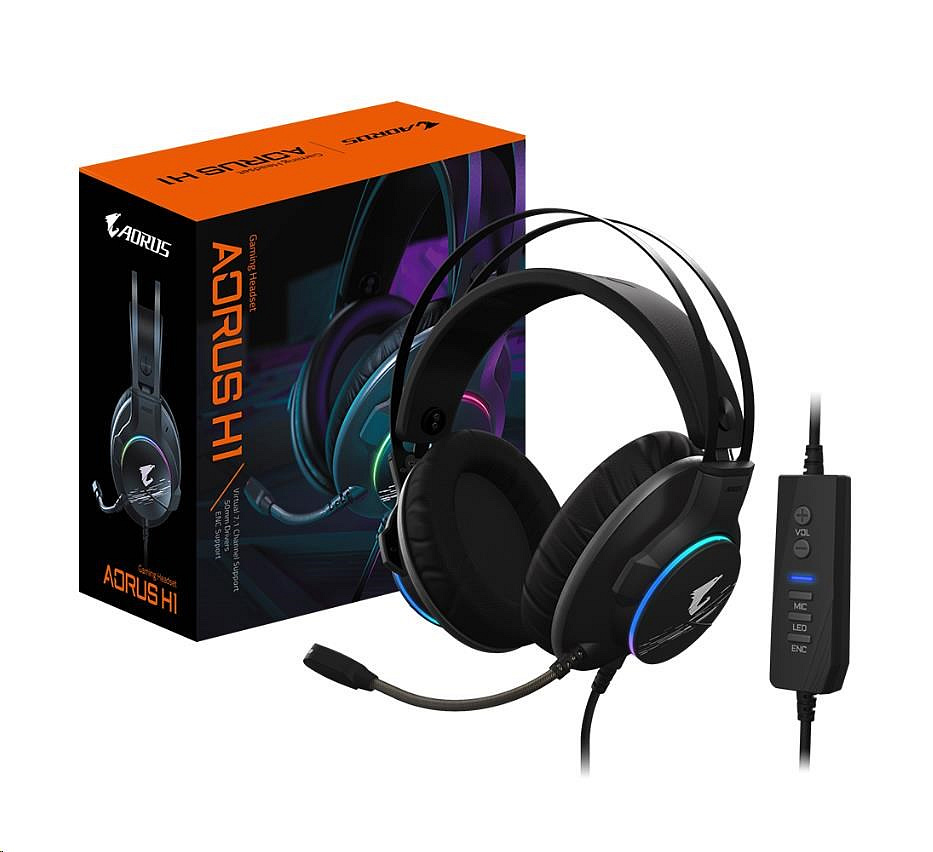 BAZAR GIGABYTE sluchátka s mikrofonem AORUS H1, headset, USB (ROZBALENO)Typ sluchátek:Plná; Rozhraní sluchátek:USB; Vlastnosti sluchátek:S mikrofonem, Osvětlené, Ovládání hlasitosti.