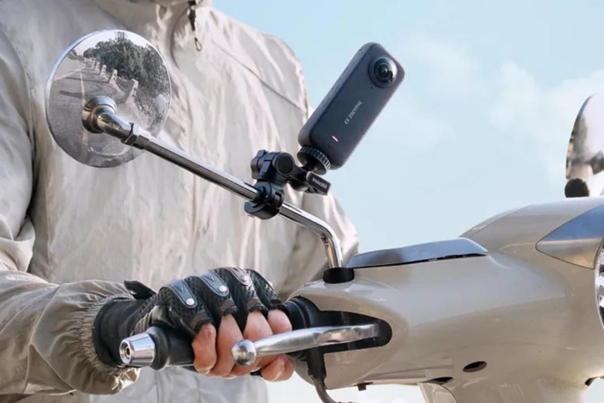 BAZAR - Insta360 držák na zrcátka motocyklu - poškozený obalDržák na zrcátka motocyklu či scooteru, díky kterému pořídíte záběry "ze třetí osoby". Lze připevnit
