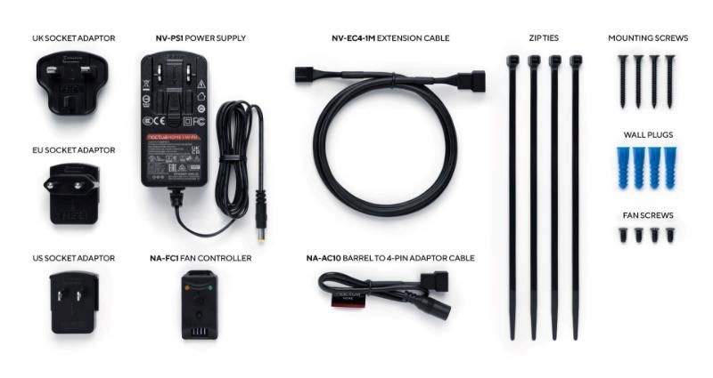 NV-FS1 je vysoce všestranná, prémiová víceúčelová sada ventilátorů, kterou lze použít pro širokou škálu ventilačních úloh, jako jsou aplikace ventilátoru na stole a místnosti nebo chlazení zařízení. Spárování s oceňovaným 120mm ventilátorem NF-A12x25 PWM se zesilovačem proudění vzduchu NV-AA1 zaručuje výjimečně tichý chladicí výkon a silný, soustředěný proud vzduchu, který lze upravit podle potřeby pomocí přiloženého regulátoru rychlosti NA-FC1.