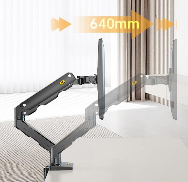 Držák na monitor Tv NB G50 Profesionální stolní držák na širokoúhlý monitor nebo All in One Pc 27-45", otočný +/-180°, sklopný +60°/-15°, nastavitelná výška od stolu 190-475mm, nastavitelná vzdálenost 0-640mm, 1x port USB, 2 typy stolních úchytů, systém vedení kabeláže, VESA stndardy 75x75 a 100x100, nosnost 16kg Jeden z nejkvalitnějších stolních držáků pro zavěšení širokoúhlých monitorů nebo All in One PC - profesionální, poctivá konstrukce, dizajn propracovaný do detailu a velmi snadné polohování. Držák doporučujeme i náročným zákazníkům, do vytížených provozů, kanceláří nebo showroomů. Své uplatnění najde na každém stole. Držák je ideální na širokoúhlé i klasické monitory, All in One Pc nebo televizory s úhlopříčkou 27-45", u širokoúhlých monitorů může být úhlopříčka i větší. Podmínkou je hmotnost v rozmezí 5-16kg, u lehčích obrazovek nebude možné výškové polohování. Držák podporuje VESA 75x75 a 100x100, v případě potřeby nabízíme i rozšíření na 200x100, 100x200 a 200x200. Kompletní polohovatelnost: otáčení +/-180°, naklápění +60°/-15°, snadné nastavení výšky díky plynovému pístu od 195mm až do 475mm, nastavení vzdálenosti od úchytu 0-640mm, funkce pivot, port USB, propracované vedení kabeláže, 2 typy stolních úchytů. Profesionální stolní držák na širokoúhlé monitory a All in One Pc NB G50 Technické údaje: minimální hmotnost monitoru nebo Tv 5kg maximální hmotnost monitoru nebo Tv 16kg podporuje VESA standardy 75x75 a 100x100 doporučená úhlopříčka monitoru Tv 27" až 45" ideální na širokoúhlé monitory, zobrazovací zařízení, All in One Pc nebo televizory otáčení do stran +/- 180° naklápění +60° / -15° nastavení výšky od stolové desky 195mm až 475mm výškové polohování 280mm nastavení vzdálenosti od stolního uchycení 0-640mm funkce pivot - horizontální nebo vertikální otočení obrazovky 1x port USB na základně držáku systém vedení kabeláže 2 typy stolních úchytů (na okraj nebo přes otvor do prostoru) barevné provedení černé záruka 5 let Profesionální stolní držák na širokoúhlý monitor NB G50 Stolní držák na širokoúhlé monitory Tv NB G50 podporuje VESA standardy: VESA 75x75 VESA 100x100.