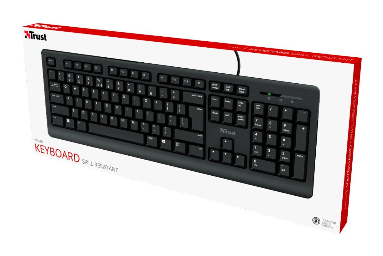 BAZAR - TRUST klávesnice PRIMO, membránová, USB, CZ/SKTyp klávesnice:Membránová; Rozhraní klávesnice:Drátová USB; Lokalizace klávesnice:CZ/SK.