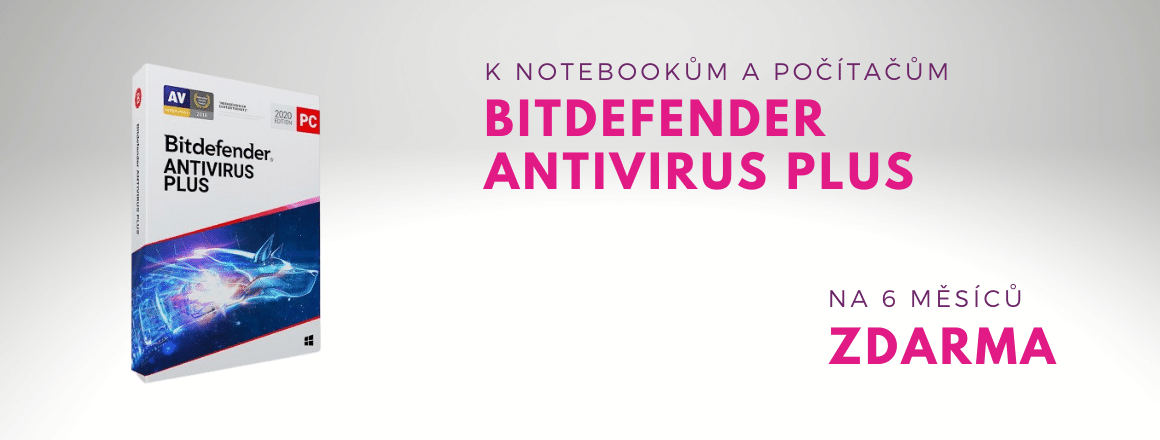 K notebookům a počítačům získáte zdarma antivirovou ochranu Bitdefender Antivirus Plus 2020 na 6 měsíců v hodnotě 499 Kč.