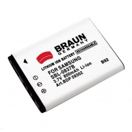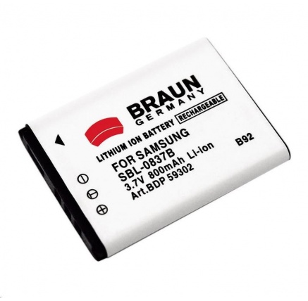 Li-Ion akumulátor Braun BDP-SBP1410 (D166, Samsung BP1410 - 3,7 V/1300 mAh) pro digitální fotoaparáty SAMSUNG NX30, WB2200F. Tento akumulátor je dodáván v částečně nabitém stavu. Před použitím je vhodné akumulátor nabít. Plné kapacity akumulátoru může být dosaženo až po cca 4-5 nabíjecích cyklech..