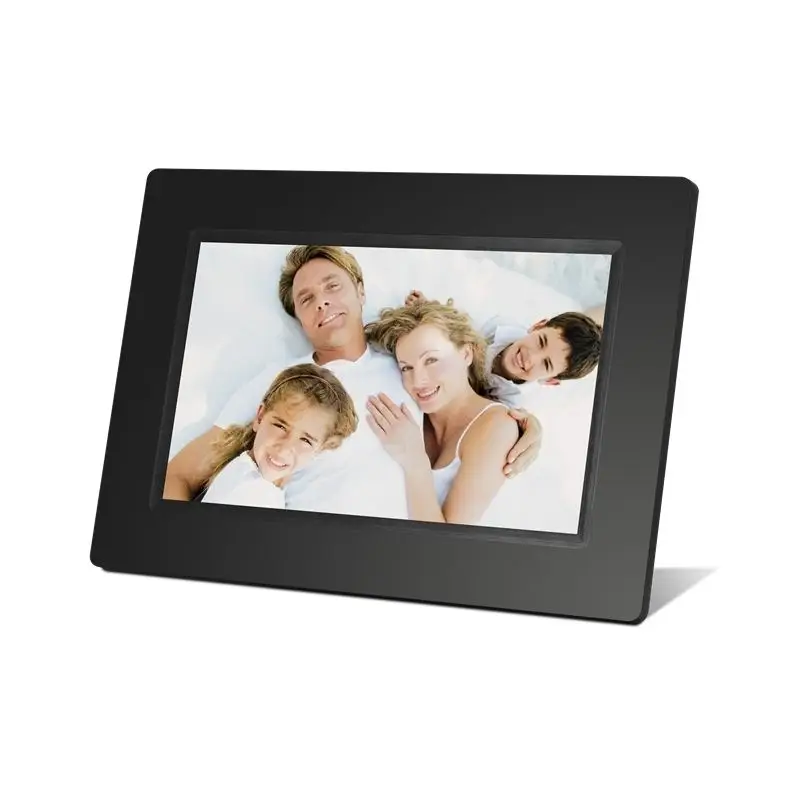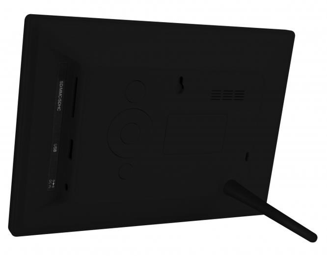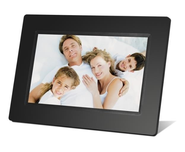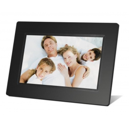 Digitální fotorámeček s úhlopříčkou 7", LED backlight, rozlišení 800×480px, 16:9, prohlížení obrázků ve formátu JPEG, slot SDHC a USB2 flash, OSD menu, bez dálkového ovladače, černý. Funkce: SlideShow (prezentace), náhledy, zoom a otáčení obrázků, budík, hodiny, kalendář. Rozměr: 204×143×26mm, hmotnost 680g/280g, Možnost uchycení na zeď nebo našrobování stojánku. Součástí dodávky síťový zdroj AC/DC 5V/1A.