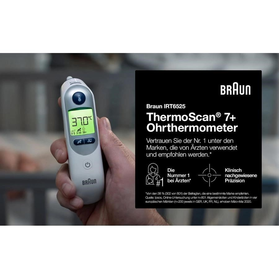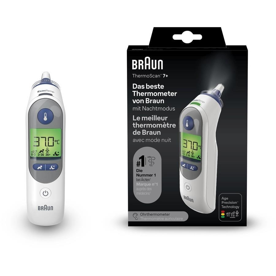 Braun ThermoScan 7 plus IRT6525WE bezkontaktní teploměr, ušní, displej, noční režim, paměť pro 9 měřeníJedná se o nejpřesnější ušní teploměr Braun díky jedinečnému předehřátému hrotu, který minimalizuje chladivý efekt vložení studeného hrotu sondy..