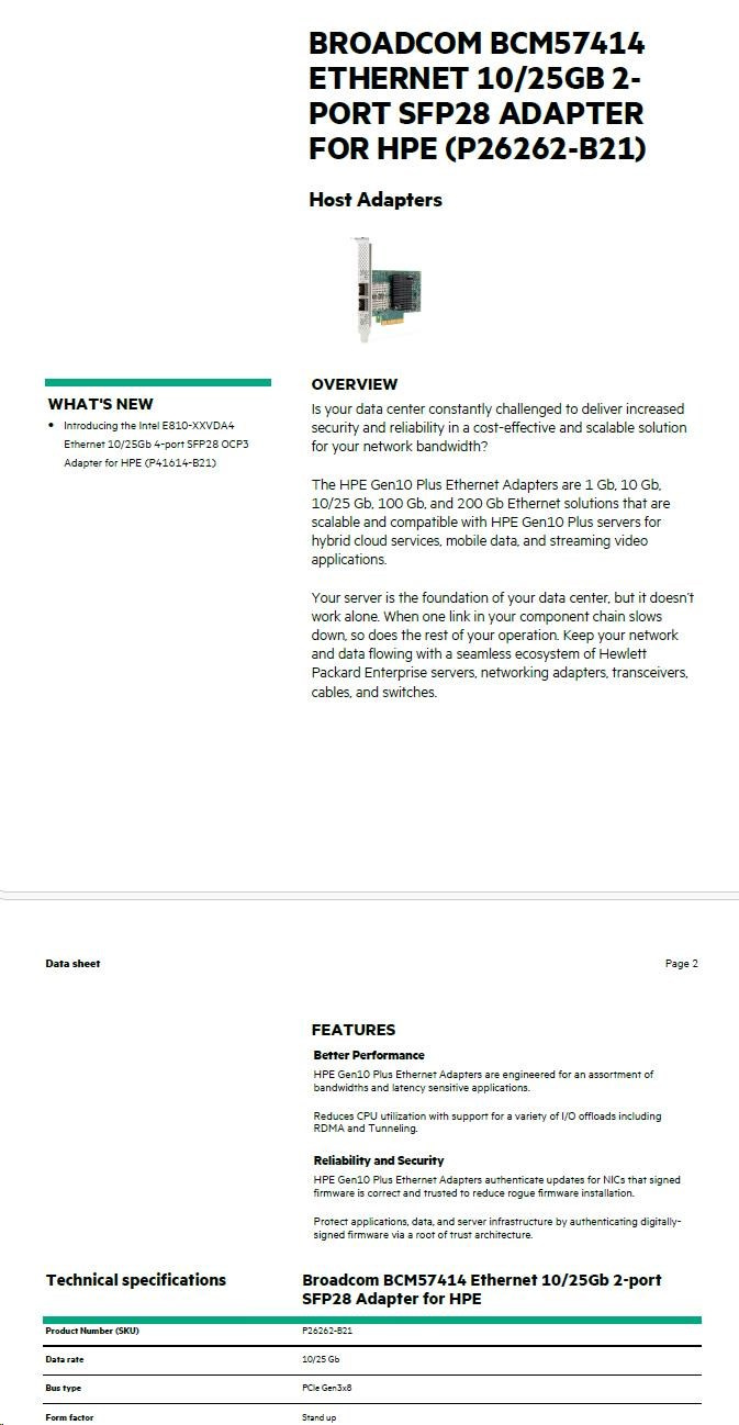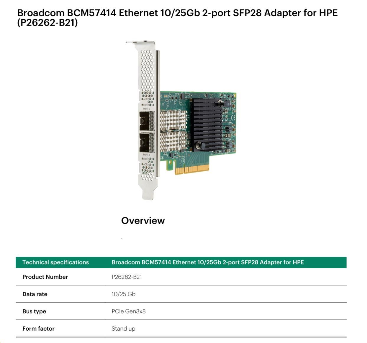 Diskuze k produktu Broadcom BCM57414 Ethernet 10/25Gb 2-port SFP28 Adapter