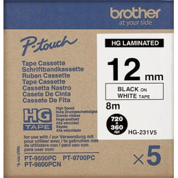 BROTHER HGE-231V5 Labelling Supplies, 12mm Black/White (5 pcs Pack) High Grade Tape