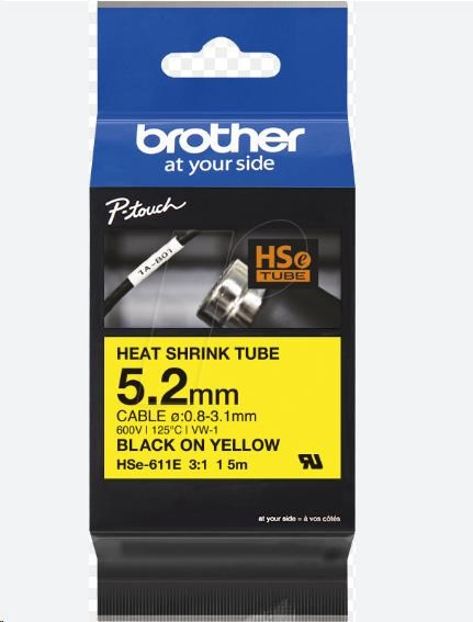 BROTHER smršťovací bužírka - HSE-611E žlutá pro E300VP H300 H500 E550 P700 P750 D800 P900 P950 - 5,2mm / o 0,8-3,1 / 3:1Typ produktu spotřebního materiálu:Barevná cartridge/toner/páska.