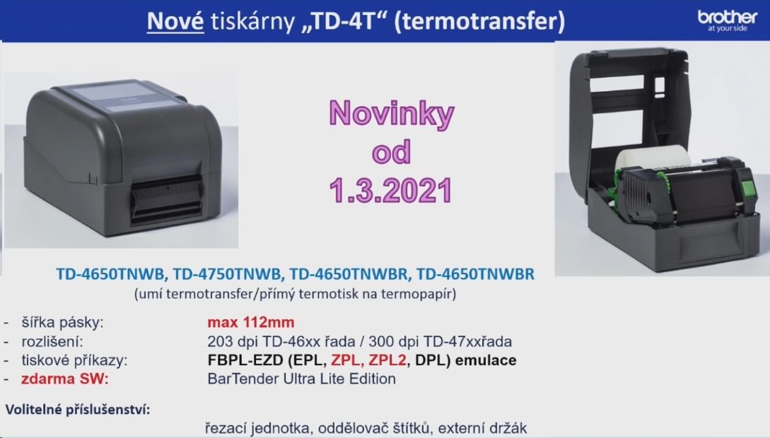 Diskuze k produktu BROTHER tiskárna štítků TD-4750TNWB (tisk štítků, 300 dpi, max šířka štítků 112 mm) USB,LAN,WiFi,Bluetooth,RS-232C