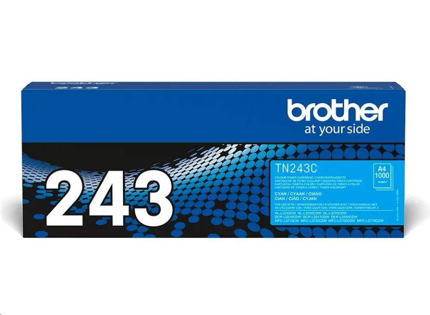 BROTHER Toner TN-243C - PRO HLL3210 HLL3270 DCPL3510 DCPL3550 MFCL3730 MFCL3770 - cca 1000stranTisková technologie:Laserová; Typ produktu spotřebního materiálu:Černá cartridge/toner/páska.